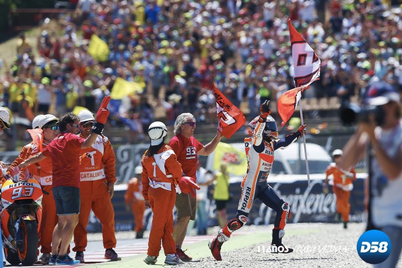 Márquez intentó que Dovizioso no se escapase pero el ritmo del italiano, que bajó casi un segundo su vuelta rápida, le logró conseguir esa misma ventaja a cinco vueltas del final, una diferencia que, salvo error, le garantizaba el triunfo pues el español era consciente de que un error en forma de caída intentando cazar a su rival podía tener un precio excesivamente elevado.