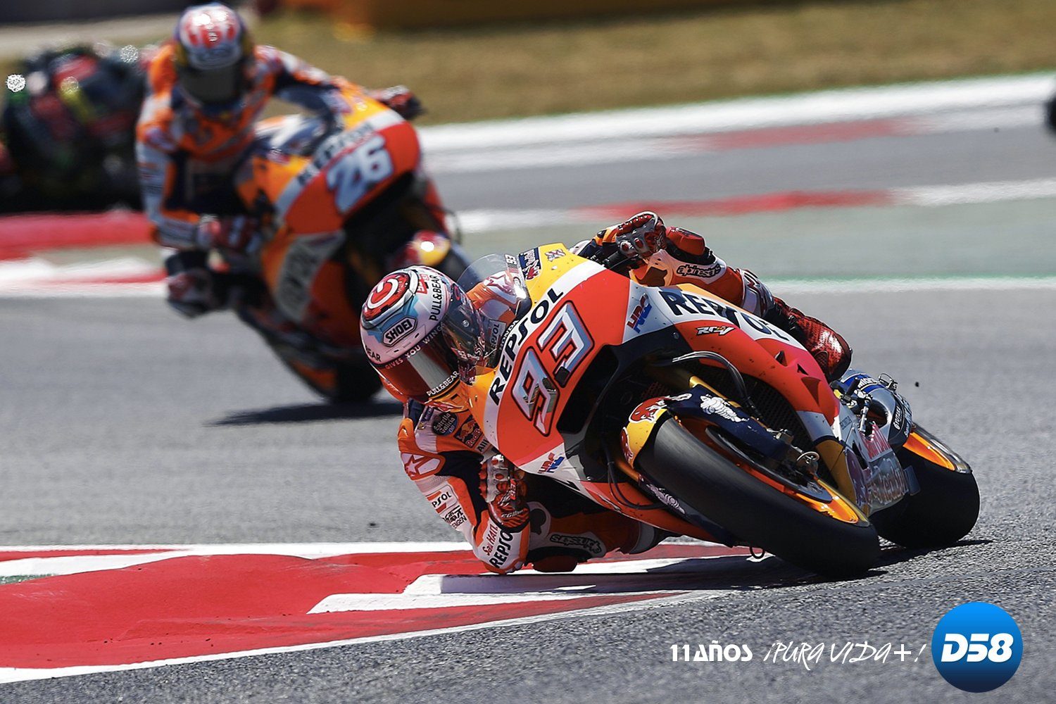 Durante ese primer giro Pedrosa no pudo aguantar el ataque de Jorge Lorenzo, el español que más carreras ha ganado en el circuito de Barcelona, con cuatro (2015, 2013, 2012 y 2010), que se situó líder, y Marc Márquez tras su estela para evitar que el de la Ducati Desmosedici GP17 se escapase demasiado pronto.