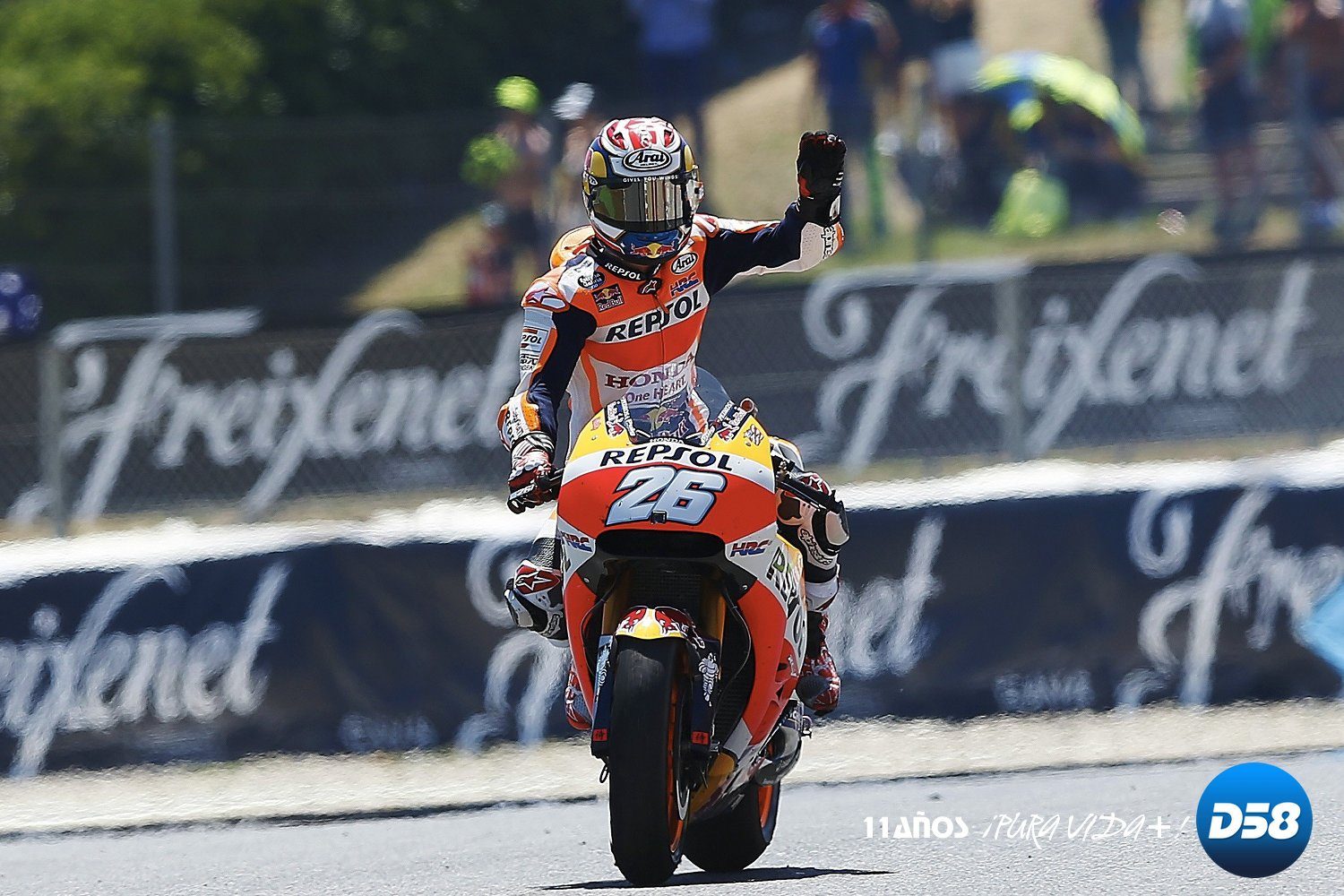 Más atrás, el humo blanco de los tubos de escape de su Aprilia RS-GP dejó a Aleix Espargaró fuera de carrera cuando rodaba en la décima posición.