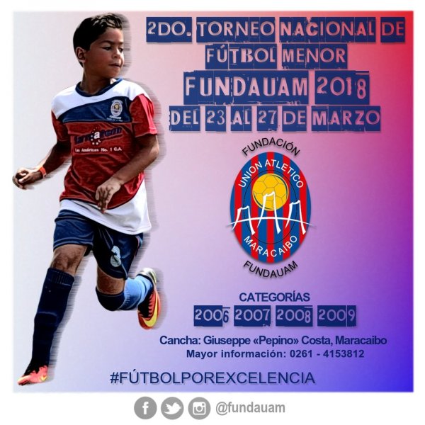 Este viernes 23 de marzo dará inicio el segundo torneo nacional de fútbol menor FUNDAUAM 2018. El acto de apertura de la competición será hoy a partir de las 6.00 de la tarde, en la cancha Giuseppe Pepino Costa.