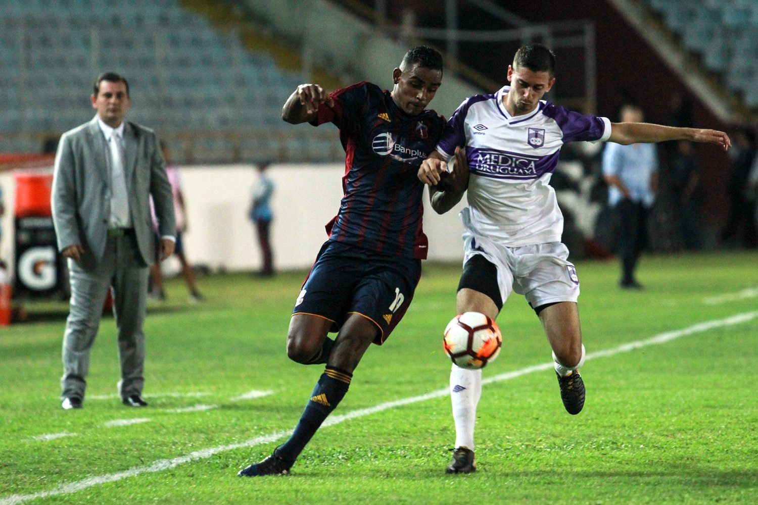 Agnel Flores y Dager Palacios, dos volantes de primera línea de pierna fuerte y mucho recorrido, entraron para dar músculo a la zona media y ahogar cualquier intentona violeta.