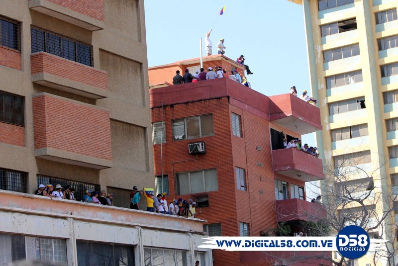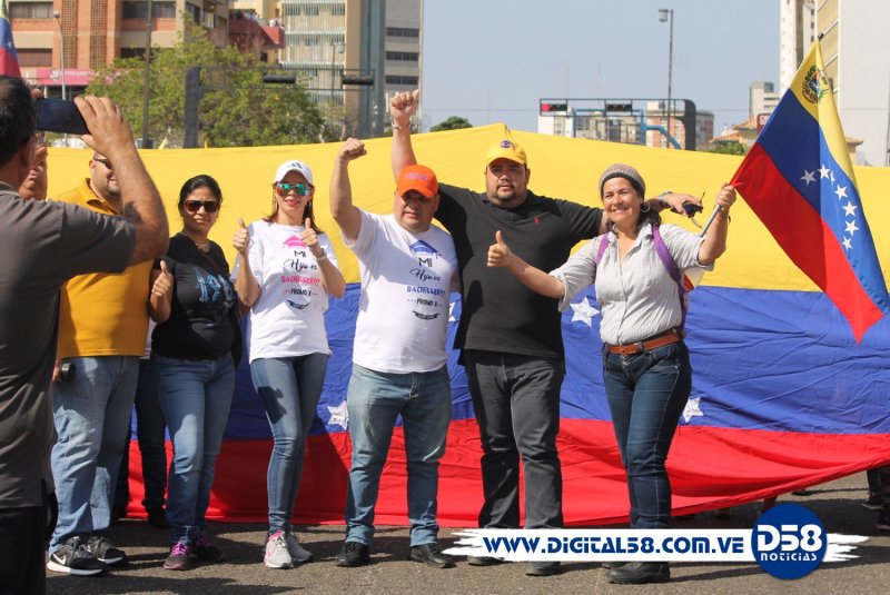 Al menos tres banderas gigantes desplegaron en el sitio y los diputados de la Asamblea Nacional, entre los que se cuentan Rafael Ramírez, Elimar Díaz, Nora Bracho y Dianela Parra, reforzaron el mensaje de apoyo que desde el parlamento nacional están dando al pueblo que decidió salir a la calle.