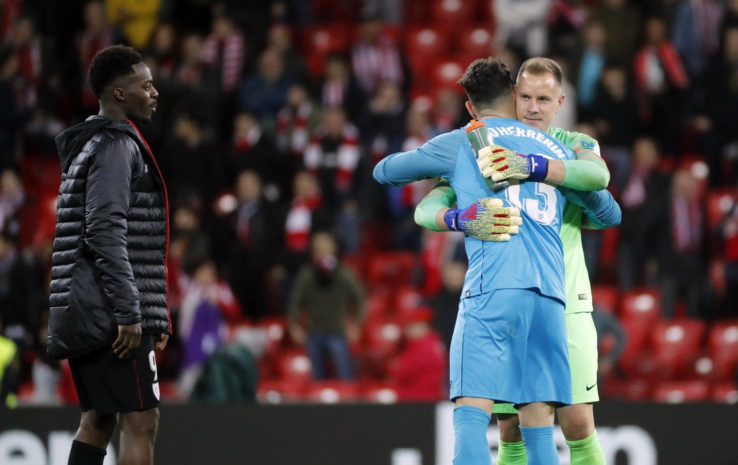 El meta alemán Marc-André Ter Stegen impidió este domingo la derrota del FC Barcelona en San Mamés con dos espléndidas paradas a disparos de Markel Susaeta e Iñaki Williams que fueron las mejores ocasiones del clásico de esta noche en Bilbao ante el Athletic Club de Bilbao que terminó sin goles. El 0-0 final fue quizás demasiado premio para un Barça que no generó oportunidades de gol, aunque sí que mantuvo la iniciativa en el juego durante más tiempo. Y quizás demasiado castigo para un Athletic que tuvo las mejores ocasiones y aguantó estoico el infructuoso dominio visitante del segundo tiempo.