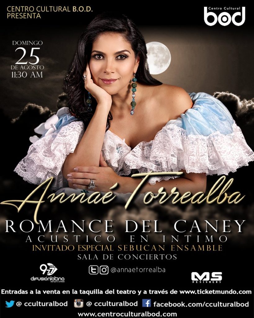 Las entradas para Annaé Torrealba: «Romance del Caney» están a la venta a través de www.ticketmundo.com y en las taquillas del Centro Cultural BOD, en La Castellana. Mayor información en www.centroculturalbod.com, o por las redes sociales, Twitter e Instagram: @cculturalbod.