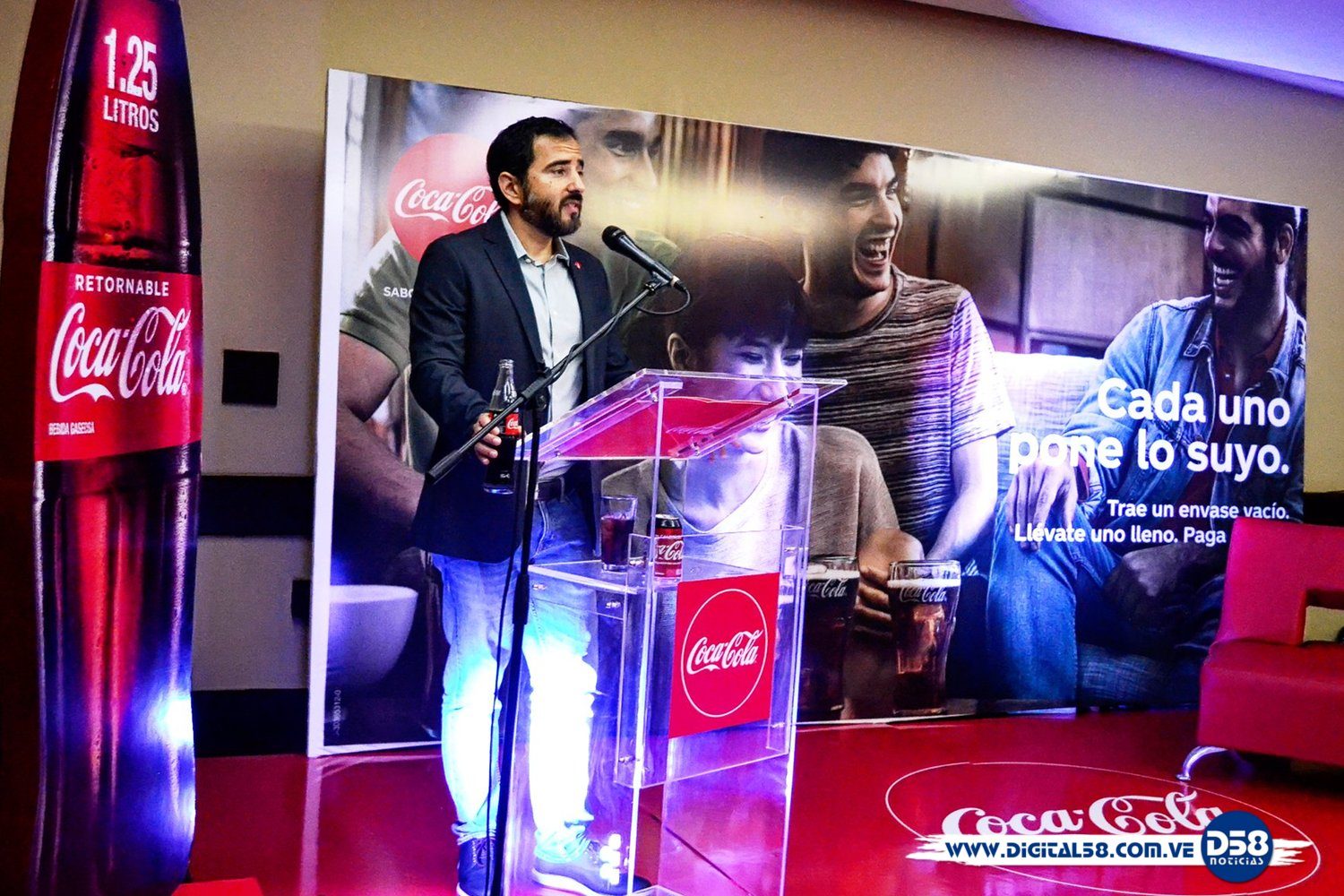 Daniel Salas, gerente nacional Legal y de Asuntos Corporativos de Coca-Cola FEMSA de Venezuela, explica la relevancia de este lanzamiento en Maracaibo: «tras un proceso de alianzas con proveedores nacionales y adecuación e inversión significativa de recursos, nuestra planta de Maracaibo cuenta ahora con la capacidad de producir botellas de vidrio retornables de 1.25 litros, que comenzaremos a distribuir, en esta etapa introductoria, en el occidente del país. Continuamos innovando para ofrecer opciones centradas en las necesidades y preferencias de nuestros consumidores».