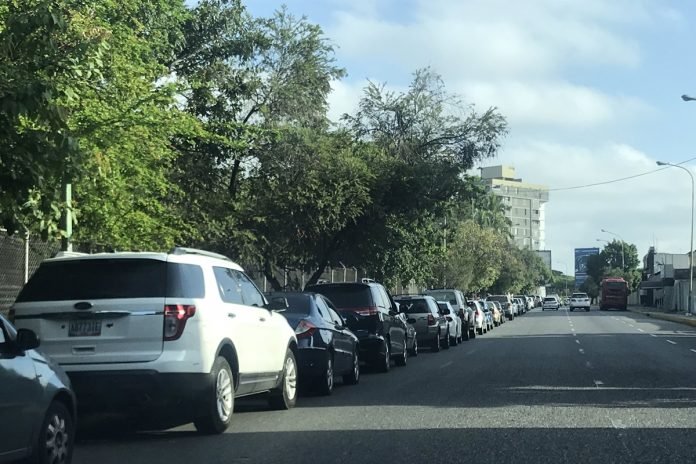 En Caracas, para surtirse del producto, se registra una larga cola de vehículos desde la avenida Andrés Bello, mientras que en la avenida Intercomunal Caracas-Guarenas, usuarios en las redes sociales reportaron una fila de hasta dos kilómetros de carros esperando para surtirse del fósil.