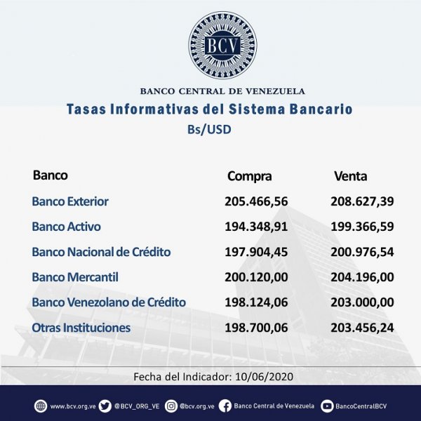 Las cotizaciones para la compra se movieron entre un mínimo de 194.348,91 bolívares del Banco Activo y un máximo de 205.466,56 bolívares del Banco Exterior, muy cerca del promedio más bajo del mercado paralelo. El Banco Mercantil también destacó con un valor de 200.120 bolívares.