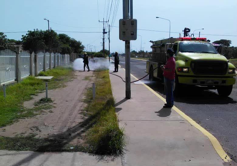 Cañada de Urdaneta, Zulia, Venezuela, 11 de julio 2020 (ND58).-La alcaldía del municipio de la Cañada de Urdaneta a través del Cuerpo de Bomberos mantiene la desinfección de las calles y avenidas del municipio.