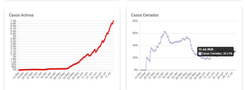 En estos 16 días se han de sanado 1401 personas, que representan el 27,9 % del total de los enfermos de julio. Es realmente preocupante que aún el 70 % se mantenga activo. El Ministerio de Salud solo detalló cifras de sanados los días 2, 8, 10 y 14 de julio.