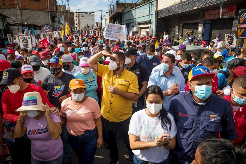 La Guaira, Venezuela, 30 de noviembre de 2020 (ND58).- Al final de la calle, entre empujones y el sofocante calor de la tarde del domingo, estos simpatizantes del Partido Socialista Unido de Venezuela (PSUV), una agrupación que fundó el fallecido presidente Hugo Chávez (1999-2013) en 2007 para aglutinar a las fuerzas de izquierda, y en el que milita «Nicolasito», escuchan al joven lanzar encendidas promesas.