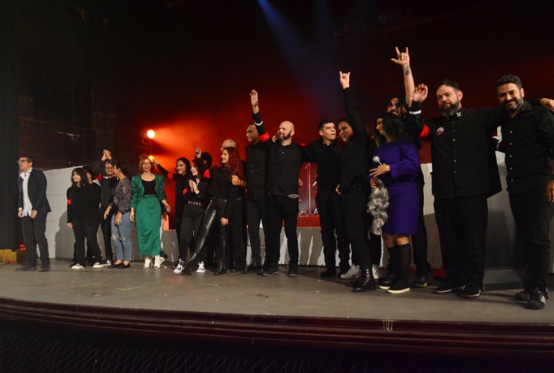 Acompañados por Luis Salavarria en la guitarra eléctrica, Carlos Pacheco, bajista; Jesús Black en la batería, Jonathan Patiño interpretando al juez y tocando la guitarra eléctrica, Gaby Cardozo (teclado) y Rafmar Rangel (vocalista/ madre de Pink).