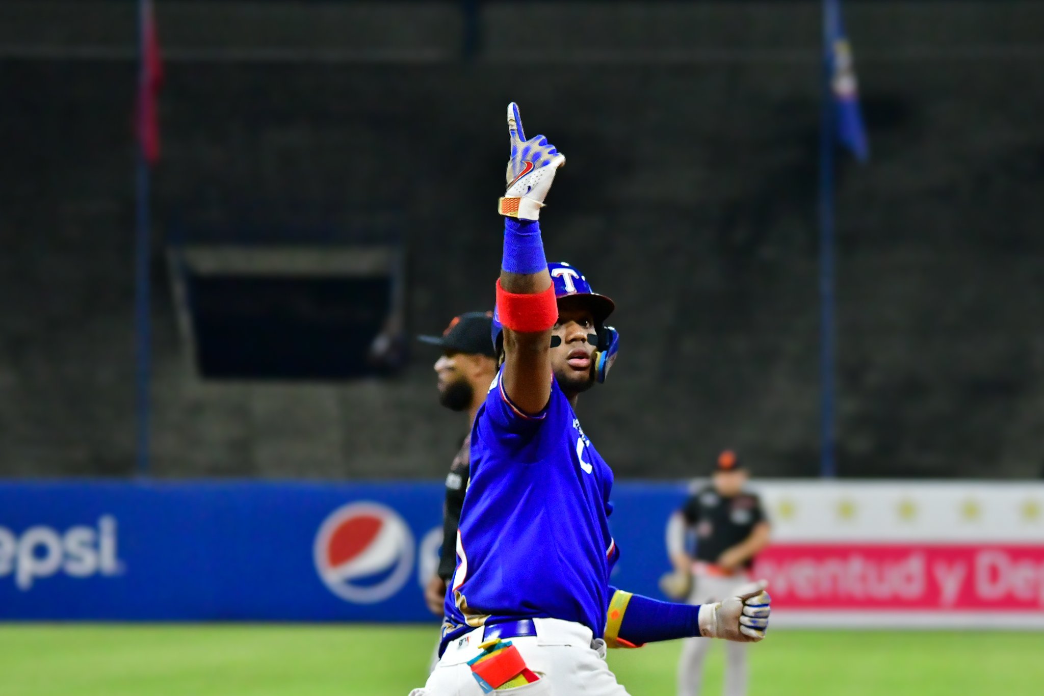 Maracaibo, Zulia, Venezuela, 08 de diciembre de 2023 (ND58).- Los jugadores nativos de la Sabana, Maikel García y Ronald Acuña jr, se activarón con su poder para guiar a los Tiburones de La Guaira a una victoria de 11 carreras por cuatro ante las Águilas del Zulia, en el marco de la «noche azul» celebrado en el estadio Universitario de Caracas.
