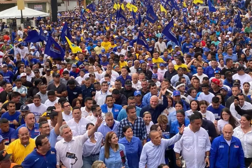 La convocatoria no solo movilizó a ciudadanos, sino también a dirigentes de los principales partidos democráticos que respaldan la candidatura de Rosales. Desde temprano, la zona se convirtió en punto de encuentro para quienes defienden la continuidad de su mandato.