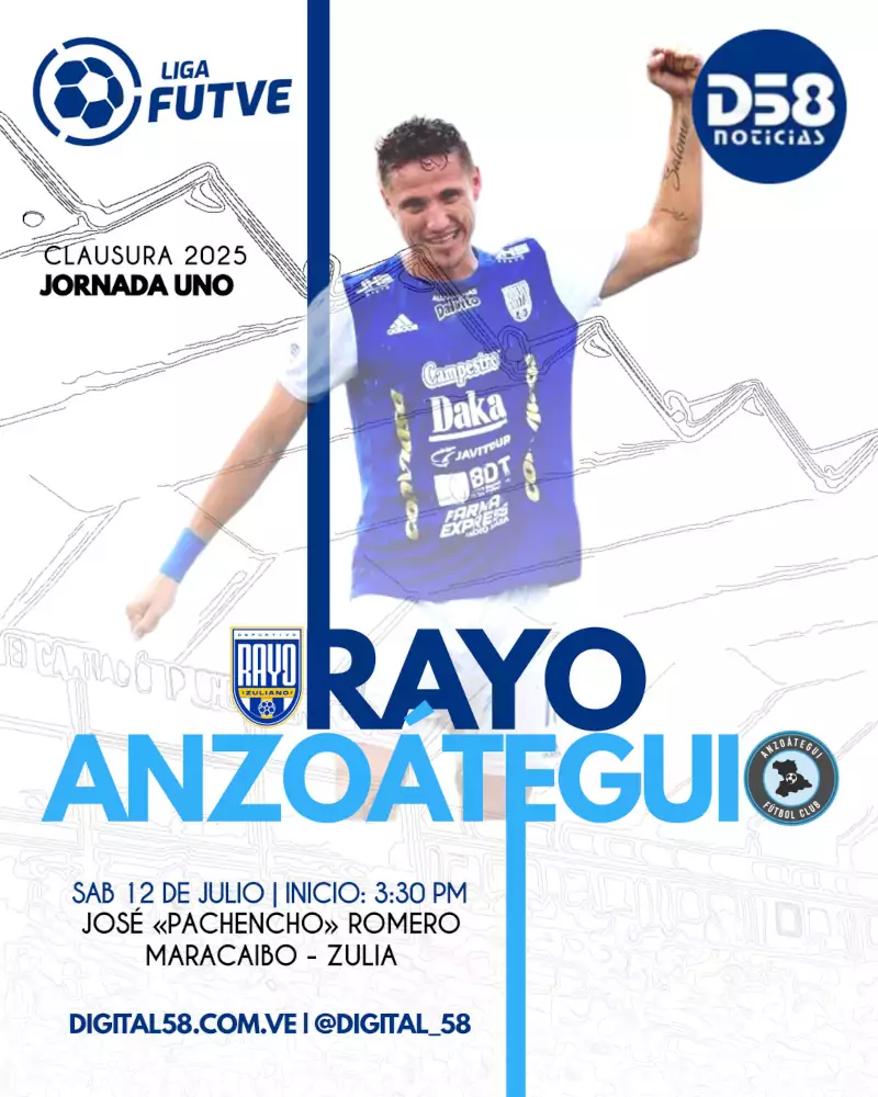 Maracaibo, Zulia, Venezuela, 12 de julio de 2025 (ND58).- Este sábado 12 de julio, el Deportivo Rayo Zuliano recibirá en Maracaibo al Anzoátegui FC en su primer partido como local del Torneo Clausura 2025. El duelo, pautado para las 3:30 p.m. en el «Pachencho» Romero, enfrenta a dos equipos urgidos de sumar tras comenzar el torneo con derrotas.