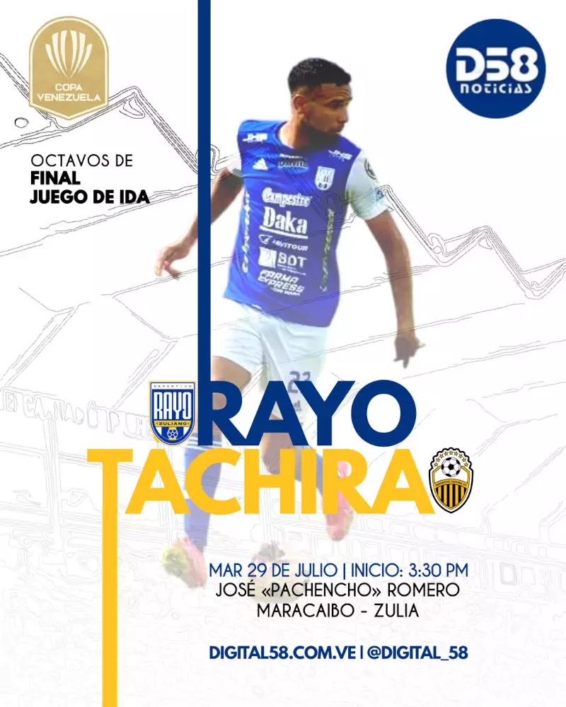 Maracaibo, Zulia, Venezuela, 29 de julio de 2025 (ND58).- Rayo Zuliano y Deportivo Táchira se enfrentarán este martes 29 de julio, en Maracaibo, por la ida de los octavos de final de la Copa Venezuela 2025, tras haberse medido recientemente por el Torneo Clausura.