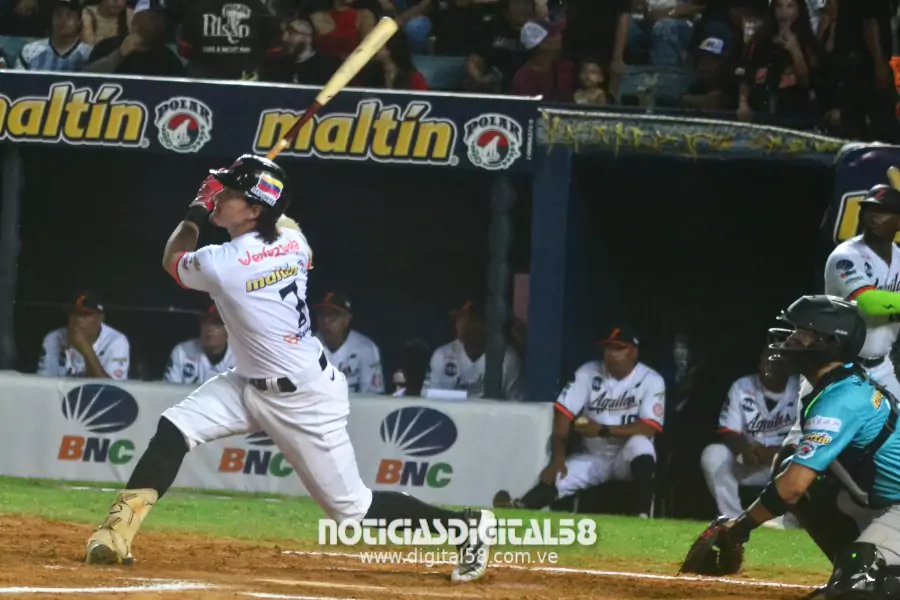 Las Águilas respondieron con un batazo de cuatro esquinas solitario de Simón Muzziotti, quien sigue encendido, y un sencillo impulsor de José Pirela en la tercera entrada para acercase momentáneamente (3×2), pero Margarita tenía más que decir.