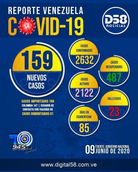 Leer más...La cifra total de contagiados aumento a 4779 y la de fallecidos en 41 decesos. Caracas, Venezuela 26 de junio